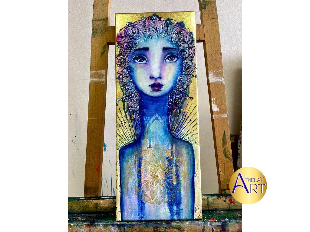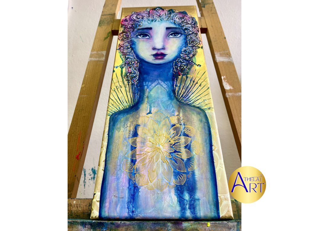 Mon-Liu přichází tiše. Není hlasitá. Je to energie, která vede dovnitř… k naslouchání, k emocím, k sobě. Vznikla na zlatém podkladu, který připomíná světlo, jež může vstupovat do našeho života, když se znovu napojíme na sebe. Možná tě zavolá ve chvíli, kdy cítíš, že se potřebuješ znovu slyšet.